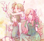 Kojiharu has a habit of saying "Nyan-Nyan". Haruna also appears to be very flirty, as she blew kisses to the audience and stunned three men with heart shaped kisses during her first appearance.