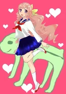 Like all members of AKB0048, she has a heart-shaped lining on her hair and eyes.