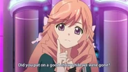 In Episode 6, Kojiharu makes two nonspeaking appearances. Once in the promotional video for the 77th Generation, where she is shown practicing singing with Nagisa, Suzuko, and Yuka, and again in a shot at the handshake event.