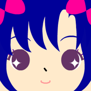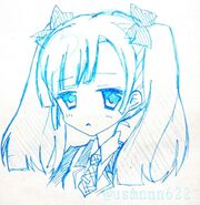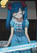 In the manga, she has medium, blackish blue twin tails with blue ribbon. She has blackish-blue eyes.